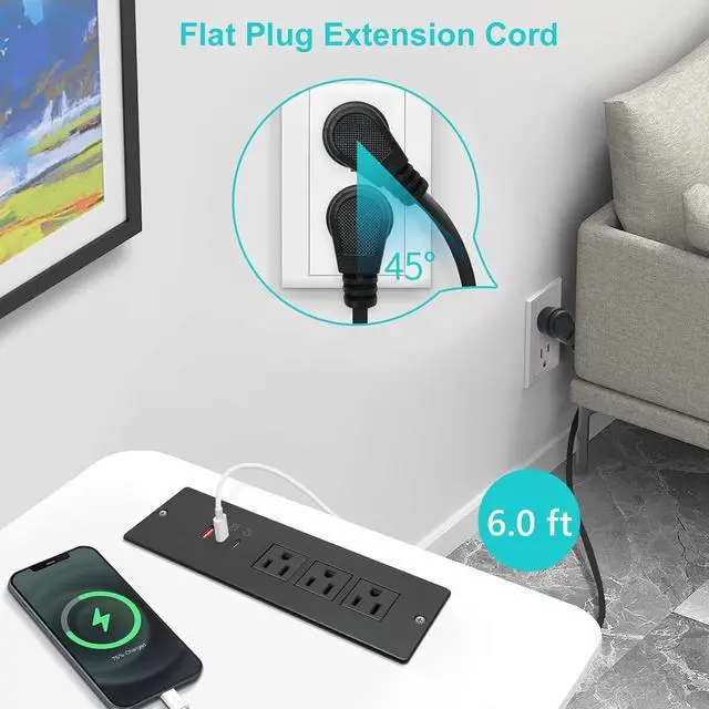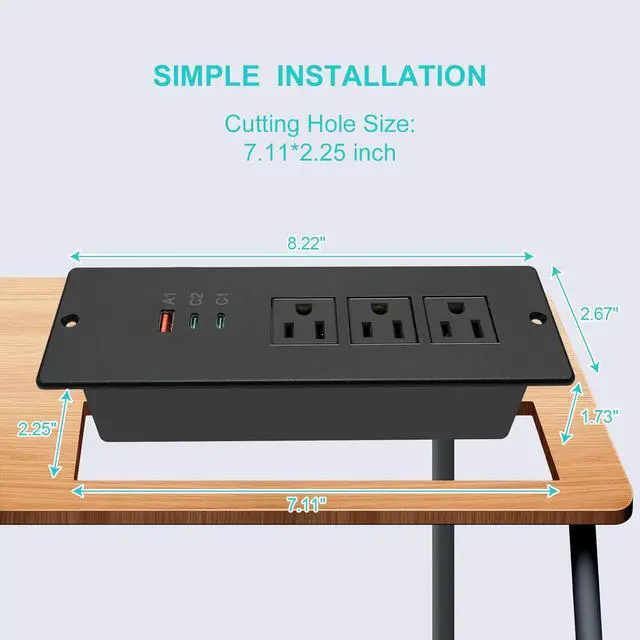 [Flush Mount Desktop Power Bar] Insert the power bar into desk,table, cabinet, no more power cord hanging around, keep your desktop/countertop/kitchen island clean and improve the furniture usage.