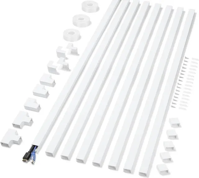 Premium Quality Cable Cover Kit: This cable management kit includes 8 pieces of 39-inch-long cable raceways and 14 connectors (5 straight connectors, 3 flat elbows, 2 T connector, 2 inside elbow, and 2 outside elbow), which you can easily splice to fit your wall cable management scheme. Each raceway length is 39 inches, requiring fewer connectors compared to shorter lengths, helping to maintain a consistently tidy appearance.