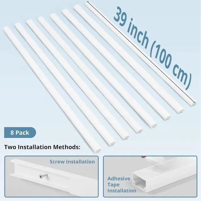 Quick and Easy Installation in Just 5 Minutes: This wall cable hider features a sliding design and comes with 3 rolls of strong double-sided tape, 16 screws and anchors, offering two installation options for you to choose from. This allows you to effortlessly hide all your messy wires without the need for professional assistance.