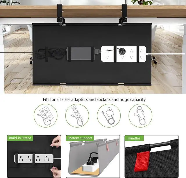 [Keep Your Workspace Tidy] - With the KEEGH no drill cable management under desk, featuring an 28-inch size to accommodate all your power extensions, adapters, and extra wires. Keep your workspace tidy and organized. Say goodbye to visible cords with the revolutionary fabric material that completely hides all wires for a clutter-free look!