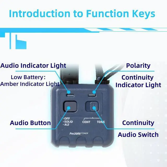 [Whats in this package?] - The tone generator and probe kit includes 1 Pro3000 Tone Generator, 1 Probe, 1 User's Manual, and 1 Storage Pouch. The motorized toner and probe kit is powered by a 9-volt alkaline battery (battery not included).