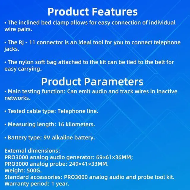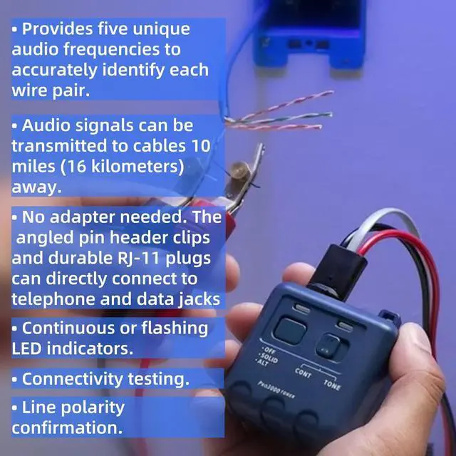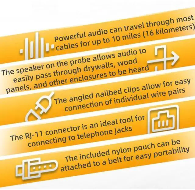 [SmartTone Technology] - The tone generator probe utilizes smarttone technology to generate 5 different tones based on the measurement for accurate measurement and matching. Don't worry about distance, for most cables the wire toner kit can send loud tones up to 10 miles.