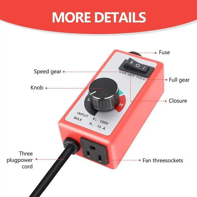 [Easy to Use]: The fan variable adjuster with direct plug in design (US 3 Hole Plug), which does not require wiring operation, just use the dial to increase or decrease fan motor speed; At the same time, the aluminum plate on the back has a hanging buckle, which is convenient to place