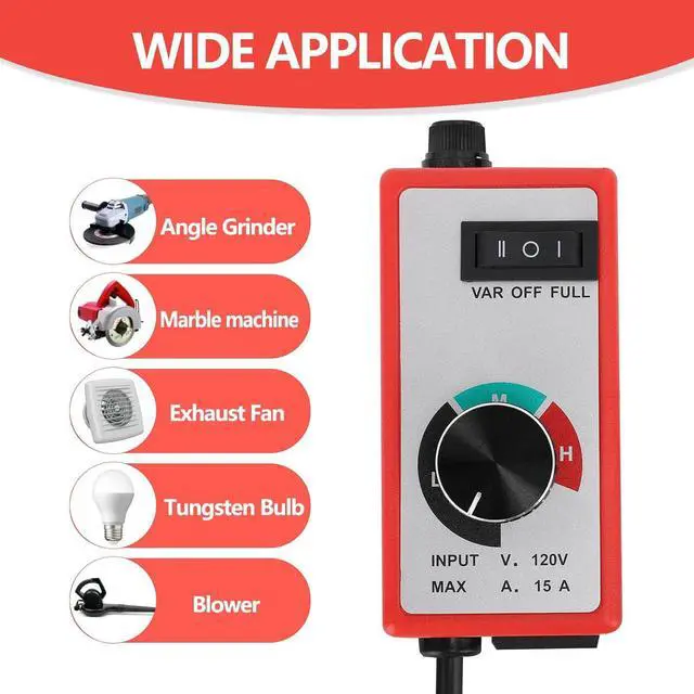 [Scope of Application]: This variable speed controller with 120V voltage, which is applicable for fan or router which power is from 500w to 1800w; Widely suit for electric tools, woodworking equipment, greenhouse adult supplies,fans, routers, automobile industry, elevator machinery