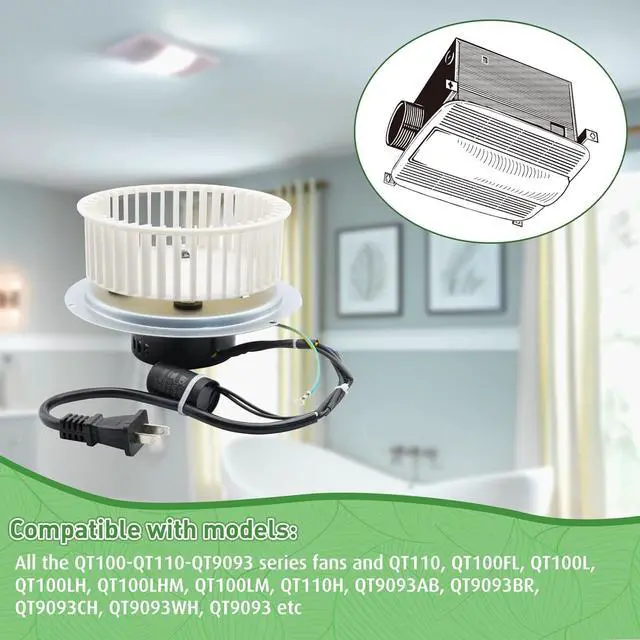 Compatible with: The 0696B000 motor assembly replacement for Nutone QT100 and QT110 series fans & QT9093. Designed to fits following Nutone QT-110N-B QT110NB, QT110N, QT110, QT100FL, QT100L, QT100H, QT100LH, QT100LHM, QT100LM, QT110H, QT9093, QT9093AB, QT9093BR, QT9093CH, QT9093WH.
