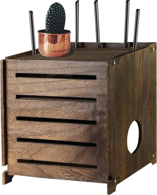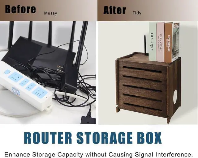 This router storage box made by natural wood is green and sturdy. Help you to conceal power strip and WiFi router. The exquisite workmanship makes the modem management box both practical and decorative, perfect for all types of home decoration styles.