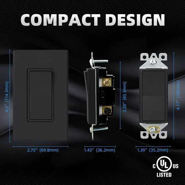 Universal ApplicationSuitable for residential use and most commercial areas that require only 15A switches. Repair or Replace old or broken rocker switches in your bedroom, kitchen or work space. UL & CUL listed.