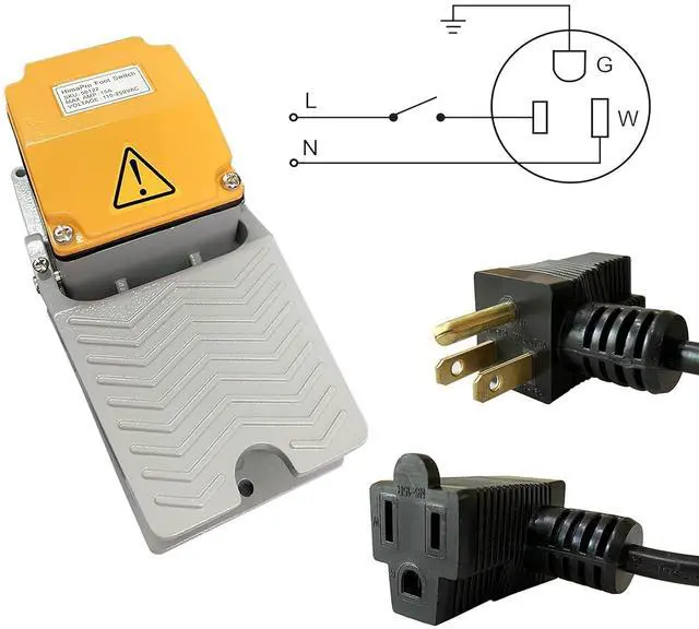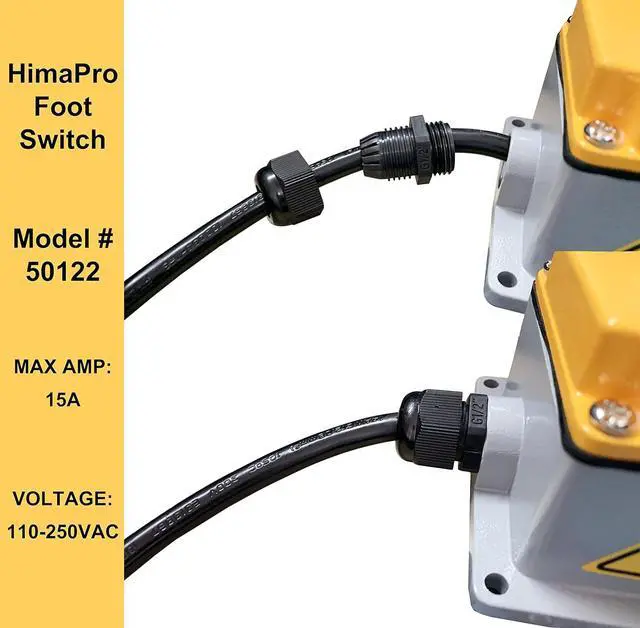 HimaPro Foot Control Momentary Switch Deadman Style, 6-ft Cable with Piggyback Plug. 15 A, 110 - 250 VAC, 18AWG wire, IP65, 1C Contact Form, SPDT NO NC.
