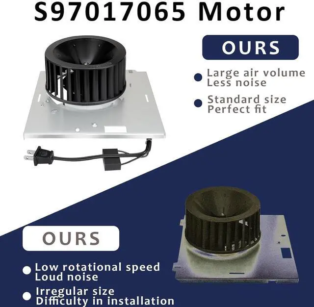 Reduce Sound Noise:80 CFM,2.5 Sones configuration,It is low noise and creates a super quiet environment. Effectively improve indoor air circulation,Remove dust and moisture,It is specially designed for the technical specifications of S97017065 Motor