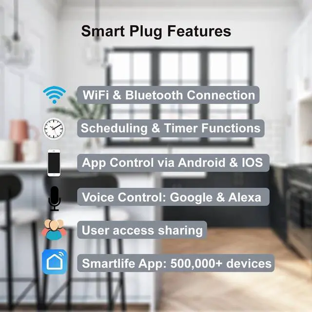 : Compatible with both Google Assistant and Alexa to control with voice commands after device is setup in SmartLife (or Tuya) app and linked to those platforms.