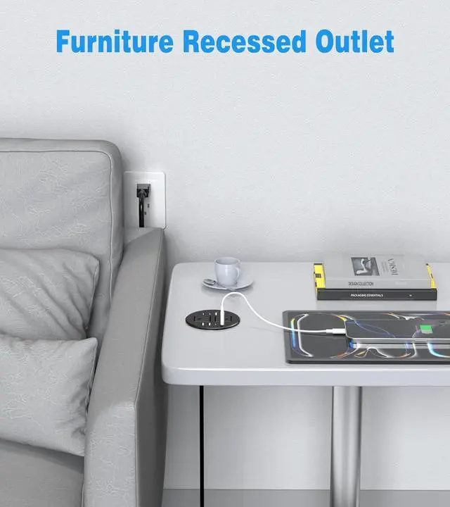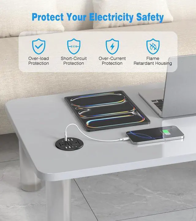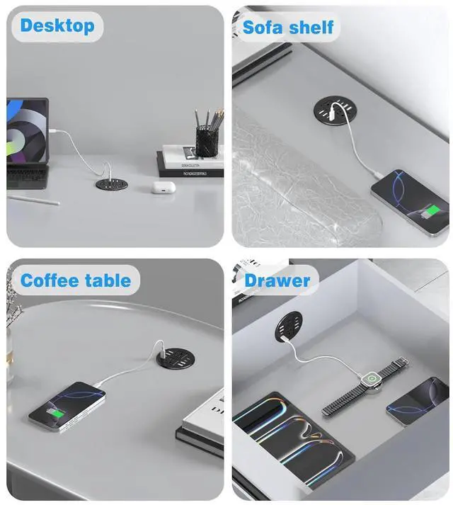 Fits Standard 3.15 Inch(80mm) Cable Holes: Suitable for all types of desks and countertops, including coffee tables and workspaces. The compact design ensures flexible installation, keep your workspace neat and organized by getting rid of bulky adapters and tangled cords. Perfect for charging multiple devices in homes, offices, or schools.