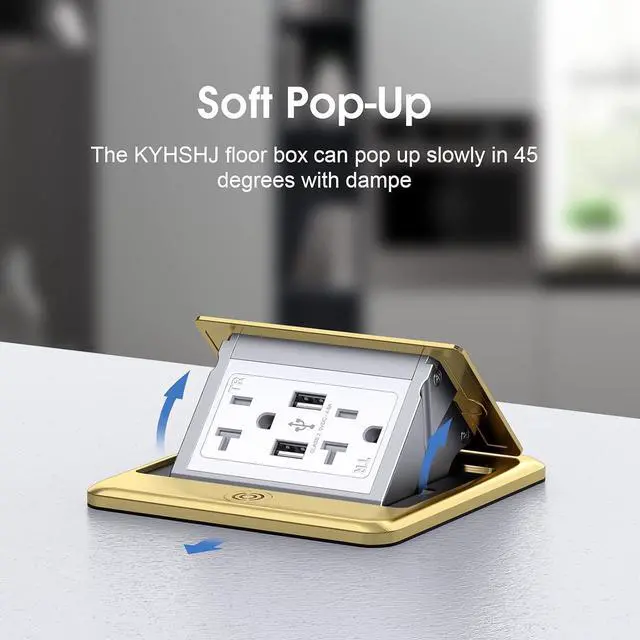 A pop up outlet box is hidden in your countertop or floor when closed, all you see is a stylish Brassr top. When you push the button the top tilts open revealing the outlets.