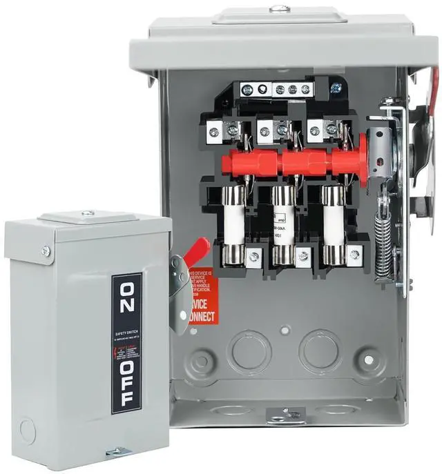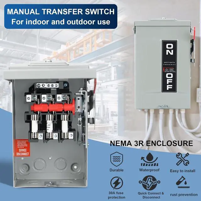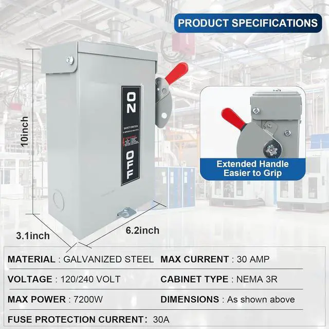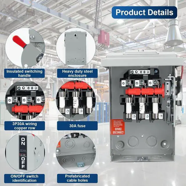 3P FUSE SAFETY SWITCH: This is a 30A, 240V, 3-phase safety switch with a 30A overload fuse; it can quickly fuse and disconnect the switch to protect the power supply and equipment safety and prevent accidents