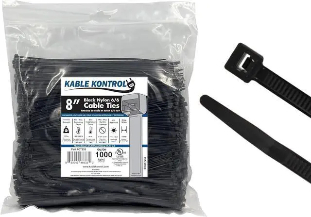 Dimensions: 8 Inch Long | 1000 Pcs/Pack | Black | 18 Lbs. Tensile Strength | UV Resistant Nylon 6-6