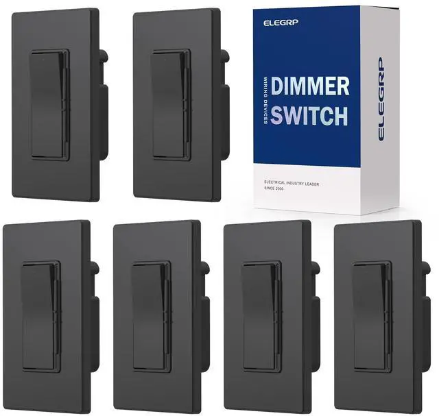 ELEGRP Slide Dimmer Switch for Dimmable LED, CFL and Incandescent Light Lamp Bulbs, Single Pole or 3-Way, Full Control with Preset, Rocker Paddle, Wall Plate Included, UL Listed (6 Pack, Matte Black)