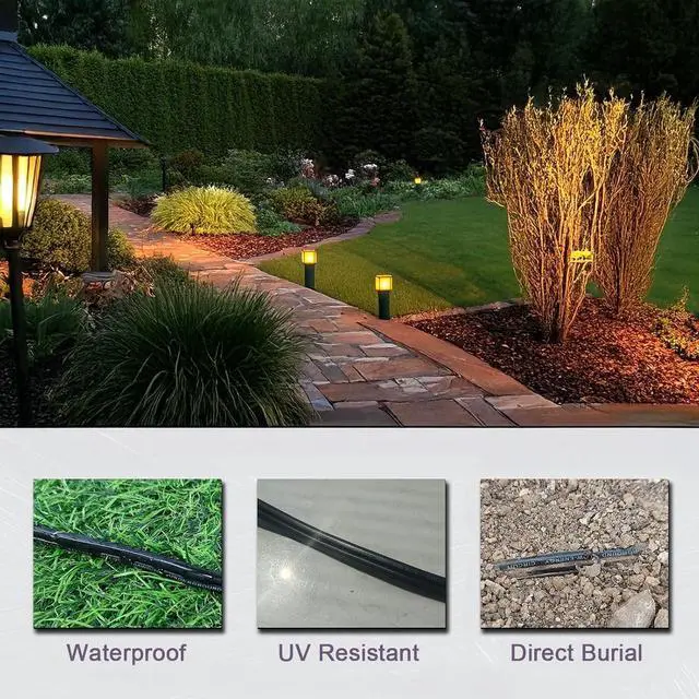 Direct Burial: Waterproof, dust and dirt resistant, rated for direct burial for low voltage garden lights, Withstands prolonged sun exposure, offering long-lasting durability.