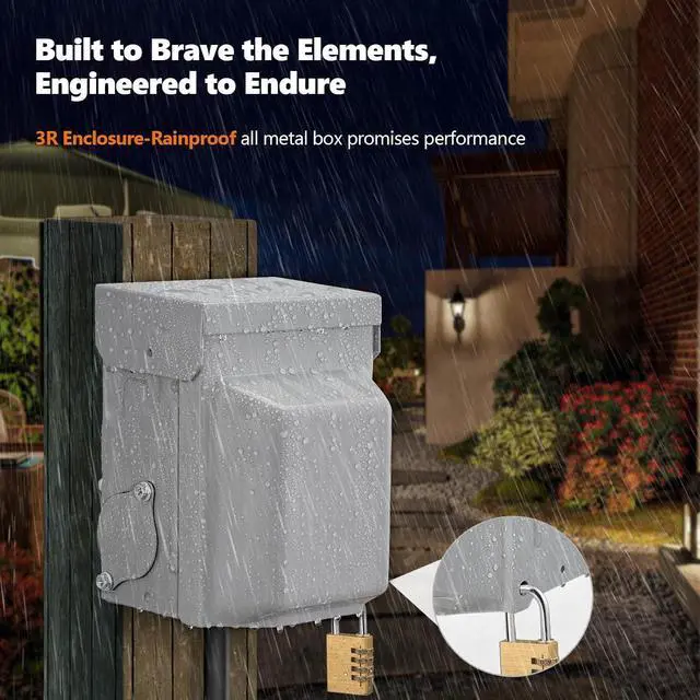 Rainproof, Dust-tight, Rust-resistant: 3R-rated all-metal enclosure crafted from high-grade galvanized steel; designed to be waterproof and resistant to rain, dust, and rust; perfect for harsh outdoor conditions; ensures durability as an outdoor electrical box waterproof solution