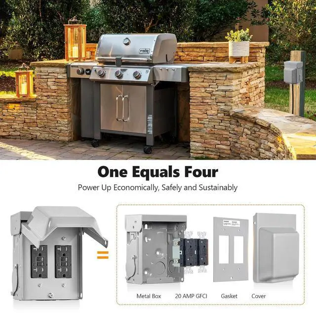 Budget-Friendly Outdoor Power Solutions: Includes rugged steel box, dual 20 AMP GFCI receptacles, gasket, and metal cover; provides an economical and robust solution for outdoor electrical needs; combines power, safety, and convenience in one package; ideal for those seeking a comprehensive outdoor electrical outlet box