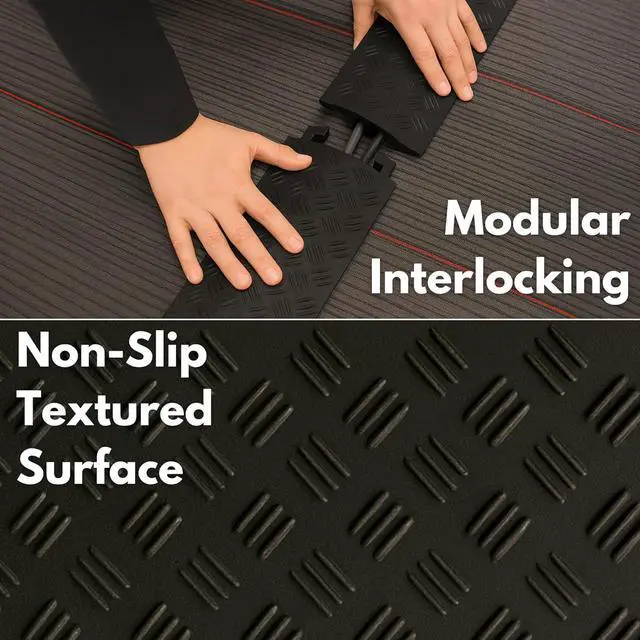 Anti-Slip Textured Surface: Features a non-slip tread pattern on top for enhanced traction, preventing slips in busy environments. No tools required, just place the ramp cover over existing cables for instant safety and organization.