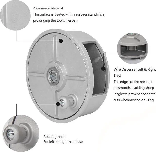 Durable & Lightweight DesignMade from premium aluminum, this lightweight wire reel offers easy portability, allowing you to carry and wear it comfortably for long periods. Built to last, it withstands tough work conditions without compromising durability