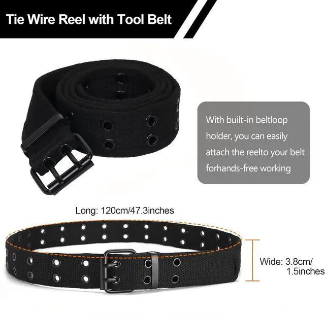 Convenient Matching Tool BeltThe included canvas tool belt features a double grommet design and metal buckle, perfectly matching the wire reel for hands-free use. Simply attach the reel to your belt for effortless operation, allowing you to focus on the job without interruptions