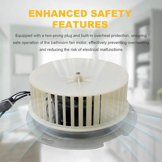 Enhanced Safety Features: Featuring a 2-prong plug and built-in thermal protection, the bathroom fan motor ensures safe operation, preventing overheating and reducing the risk of electrical issues, giving you peace of mind during use