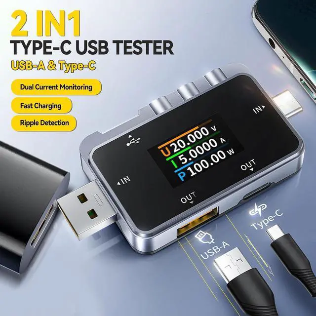 Multi-Interface Compatible: The FNAC-28 USB Tester features USB-A, Type-C dual male ports, making it suitable for different interfaces of the charger detection and charging detection. It is plug-and-play, so you don't need to transfer anything