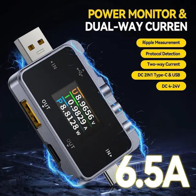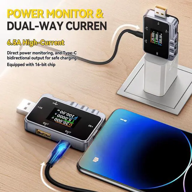 Real-Time Power Detection: The FNAC-28 USB Tester features a 6.5A high-current USB interface, which provides straight-through charging power detection. The Type-C interface supports bidirectional current output, making it easy to monitor your charging status in real-time