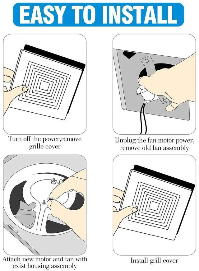 Buy with Confidence: Your satisfaction is our goal. 82229000 bathroom vent fan motor replacement kit an ideal replacement for damaged or worn bathroom fan motor, removes odor and improves air circulation in your bathroom. Vent fan motor replacement will improve the quality of life by reducing noise
