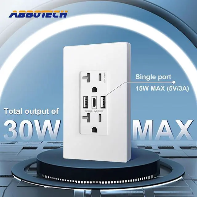 [Multi-Port Charging Solution]: Our wall outlet charger boasts 1 USB-C ports and 2 USB-A port, offering a total output of 6Amp, with a maximum capacity of 30W (each port supporting up to 15W at 5V/3A). This allows for swift charging of up to three devices simultaneously.