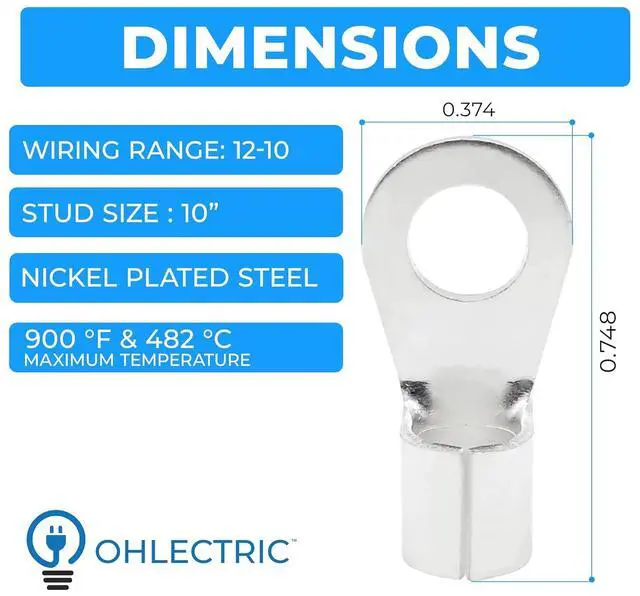 Our ring terminal connectors are made of nickel-plated steel for corrosion resistance and strength