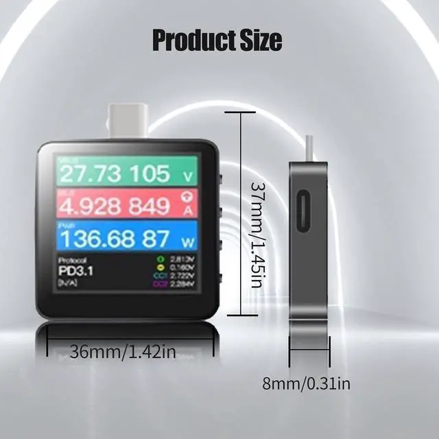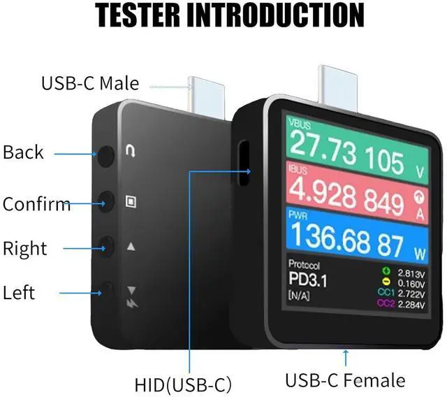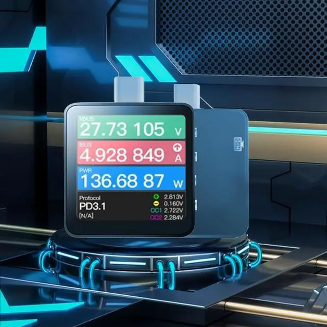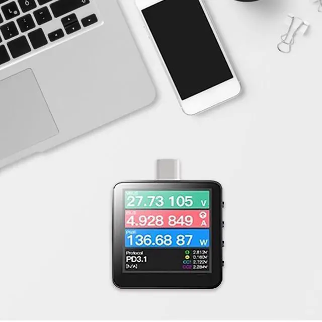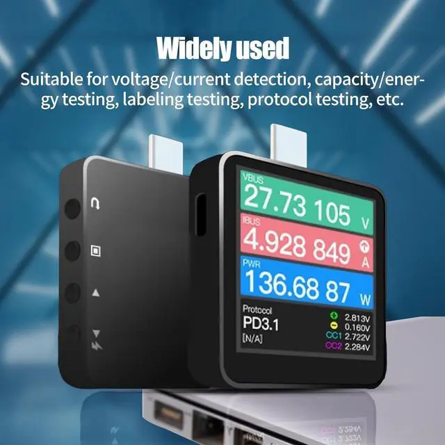 New Upgrade: PD 3.1 support., This tester can support multiple tests, including voltage/current detection, capacity/energy test, E-marker test, PDO test, protocol test, etc.The language can be selected in the Settings.Support English and Chinese.