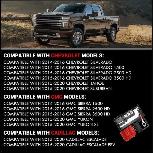 Compatibility:Compatible With 2014-2016 Chevrolet Silverado 1500 GMC Sierra 1500,2015-2016 Chevrolet Silverado 2500HD 3500HD GMC Sierra 1500 2500 HD 3500 HD,2015-2020 Cadillac Escalade/ESV GMC Yukon/XL Chevrolet Tahoe Suburban