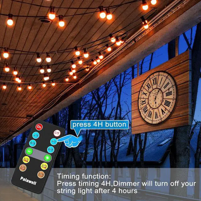 REMOTE CONTROL DIMMER: Outdoor dimmer has a remote control range of 100 feet,outdoor dimmer with remote,this is a dimmer switches for led lights,preset delay off and switches,which will ensure that even in bad weather, you can easily control your lights from your couch or bed indoors by remote control. Palawell led string light dimmer switch is no App,plug and use,easy to operate.