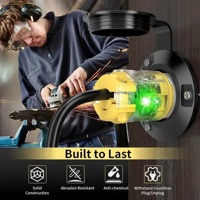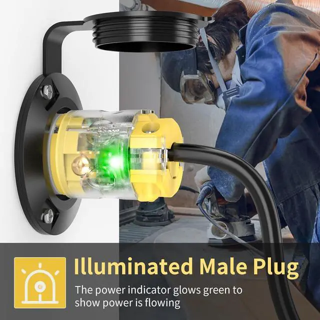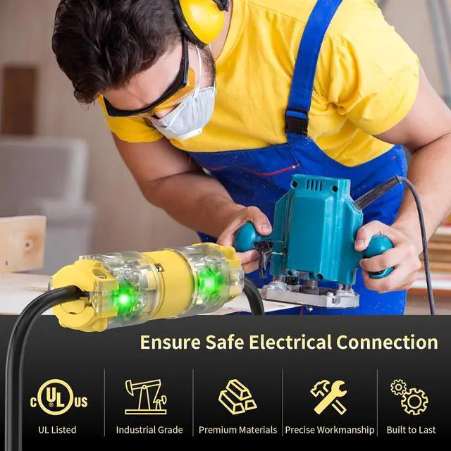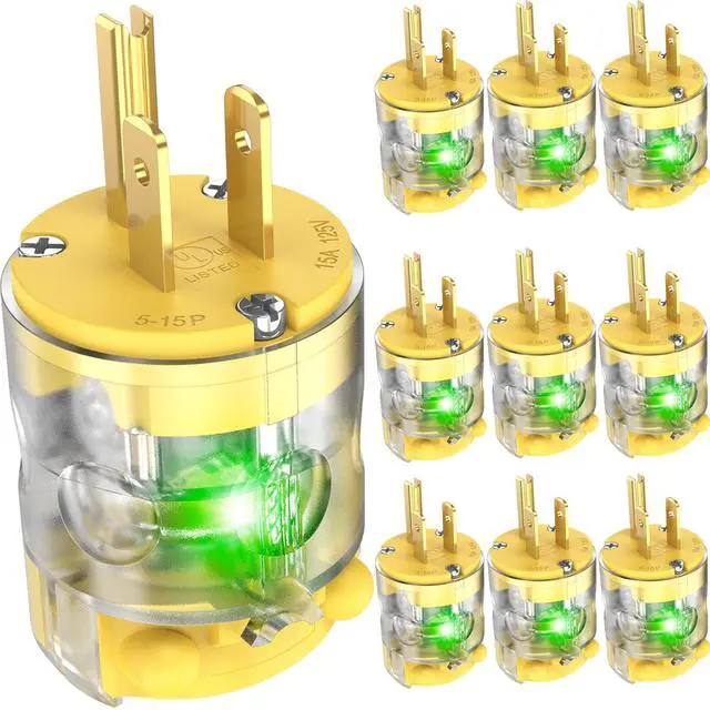 Illuminated Male Plugs: These NEMA 5-15 male plugs feature indicators that glow with a green neon light, indicating they're operational. Plus, the light makes them easier to use in no lighting, improving safety