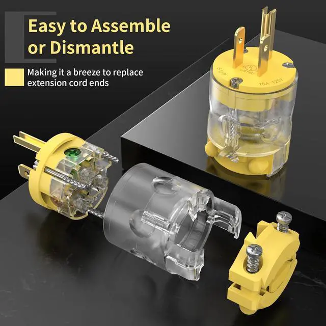 Easy to Use: The precise workmanship of NEMA 5-15P plugs makes them easy to replace at the ends of extension cords. Ideal for use in industries, homes, offices, gardens, and so on