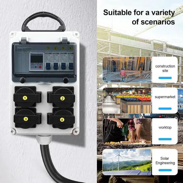 SCOPE OF APPLICATIONEach socket is protected by an individual overload circuit breaker. Easy to use and 100% safe. The breaker box is suitable for use in high-power equipment such as engineering construction, electrical workbenches, solar power distribution equipment, store garden lamps, generators, etc., to effectively protect the safety of equipment and personnel;