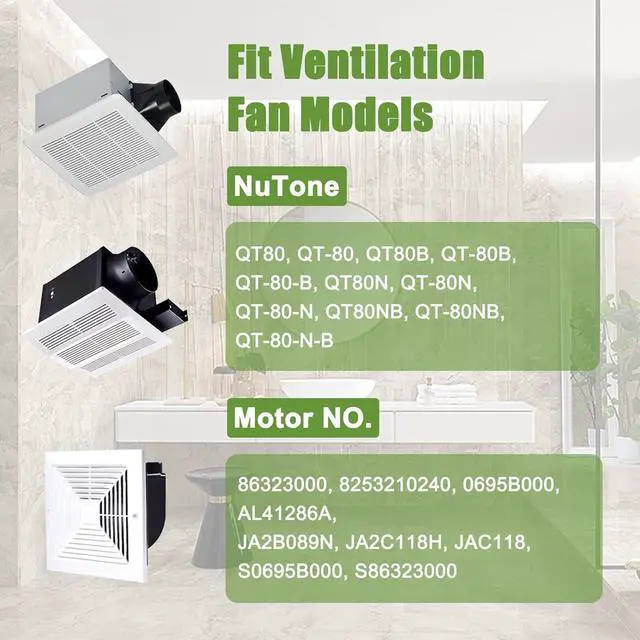 Compatibility 0695B000 Motor Assembly Replacement for Nutone QT80, QT80B, QT80N, QT80NB, QT-80, QT-80B, QT-80N, QT-80NB, QT-80-B, QT-80-N, QT-80-N-B.