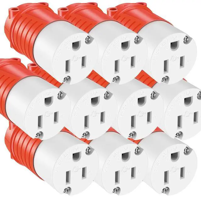 110V Femal Plug 120V Drop Cord Cap NEMA 5-15R 15A Repair Receptacle for 12AWG Male Extension Cord End Replacement ETL Listed Orange-Tinted Red 10-Pack