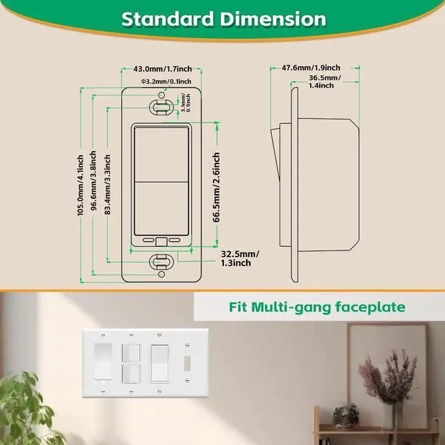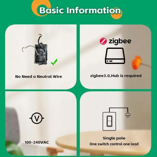 Installation: This is a no neutral wire smart switch. It supports the single pole wiring condition (NOT 3 way smart switch). A Zigbee gateway smart home hub is necessary. It fits standard decorative wall plate (1 Gang, 2 gang, etc.) with another smart wall switch next to it.