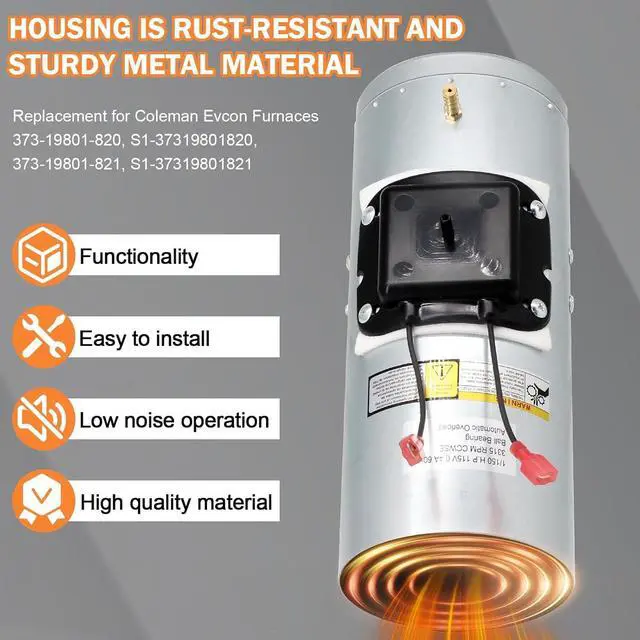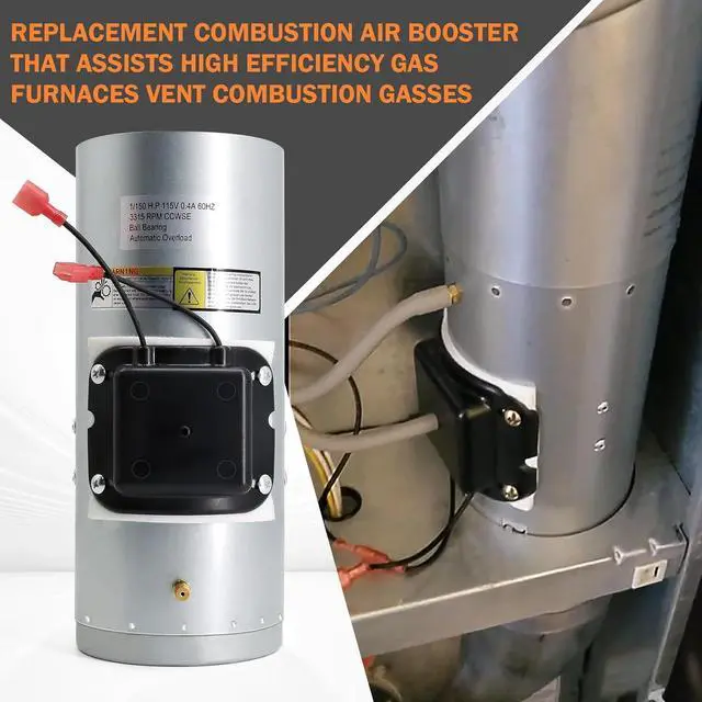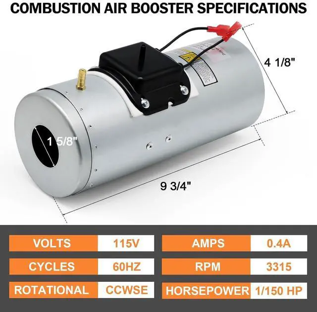 Quality Materials: Direct replacement for Coleman, Built for high efficiency gas furnaces, Low noise and high efficiency, safe and reliable, made of high quality materials, Compact and sturdy, built to last, Booster assembly measures 9 3/4 long x 4 1/8 diameter, Inlet air hole is 1 5/8