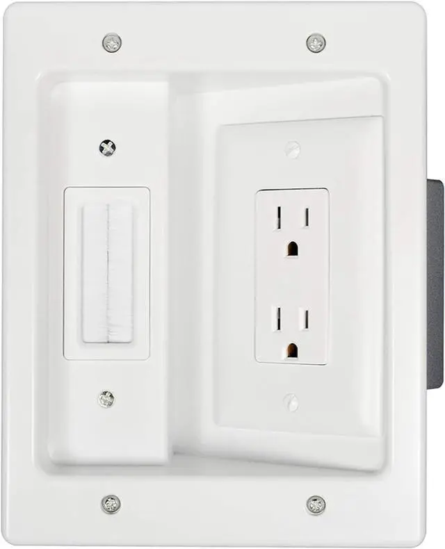 Enhance your TV setup with Flat Panel TV Connection Kit which neatly manages excess cables via in-wall storage, allowing for a clean, professional look. This phlegmatic solution keeps unsightly wires and cables hidden, ensuring your living space remains uncluttered while providing convenient access to the back of the TV when adjustments are necessary.