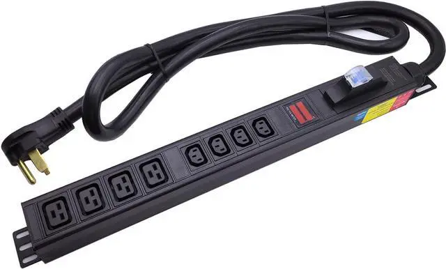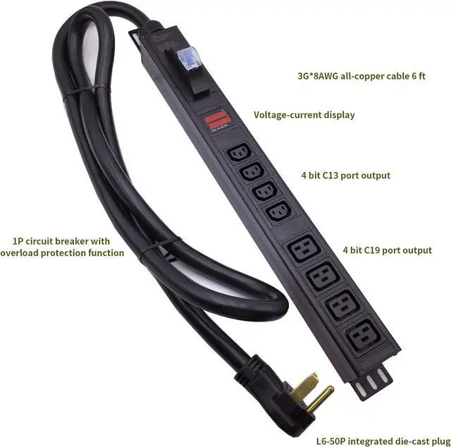Data Center 240V 50Amp Server Cabinet L6-50P 8 Outlets IEC 4 bit C13+4 bit C19 PDU Meter PDU Aluminum Alloy Rack Type Power Socket (C13-08-D)