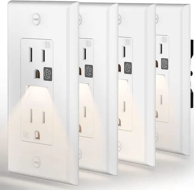 [Versatility]Install in kitchens, bathrooms, stairsanywhere needing residential-grade outlet with night light. Compliant with NEMA 5-15R/125V."
