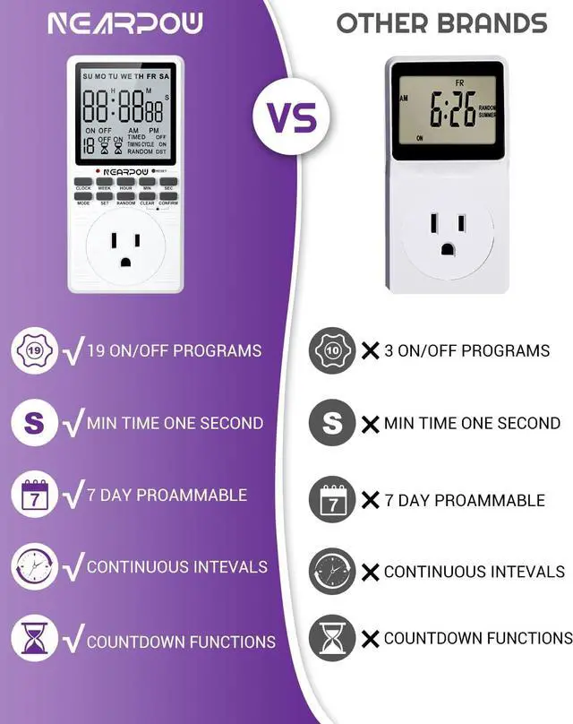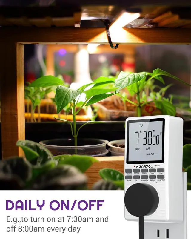 [Widely Used] NEARPOW 3-prong grounded outlet timer, easily program, ideal for lights, cooling and heating systems, indoor sprinklers, humidifiers, aquariums, nebulizers, ventilators, and more