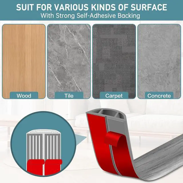 Strong Adhesive Backing: The cord cover floor has a strong adhesive tape, making installation easy. Simply cut the desired length and place the wire in the channel. Peel off the film and stick it to any floor or wall edge, including hardwood floors, tiles, or carpets.