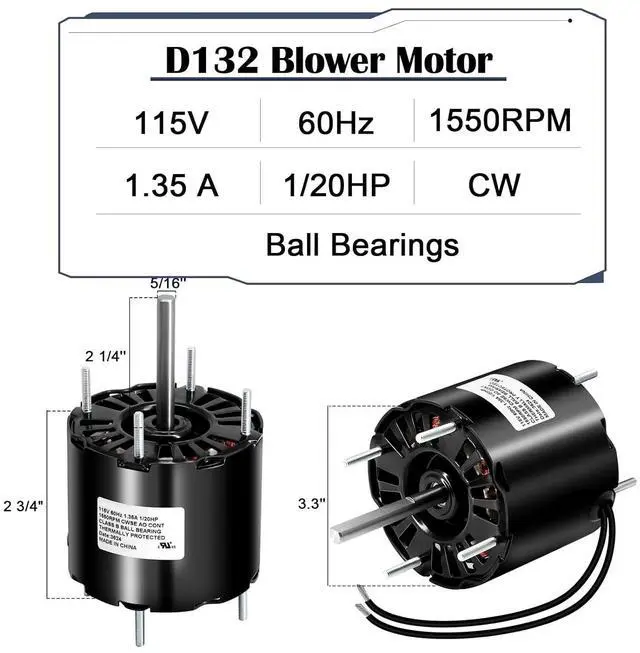 Upgraded Motor - This fasco blower motor d132 is a pure copper motor. Featuring excellent conductivity and durability, it can achieve efficient heat dissipation and reduce the risk of overheating during long-term use. Copper is a sturdy material that can withstand the stress of continuous operation, helping to extend the service life of exhaust fans and reduce maintenance and replacement costs over time.