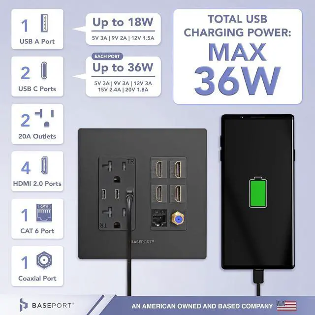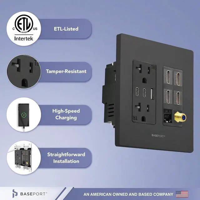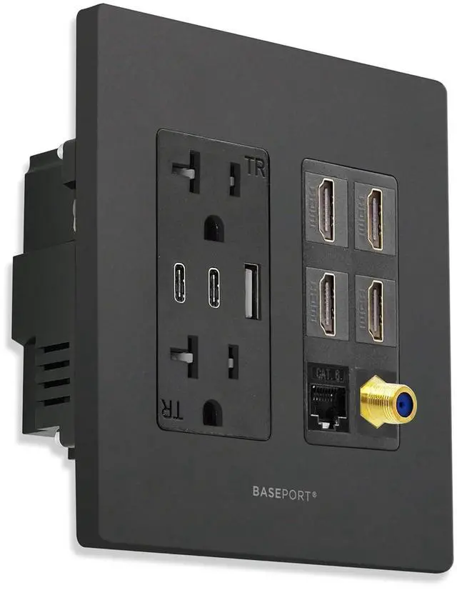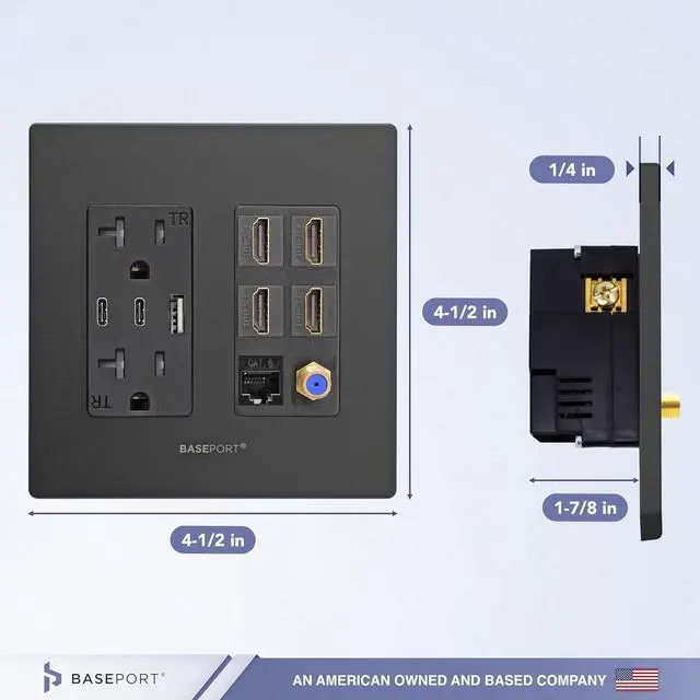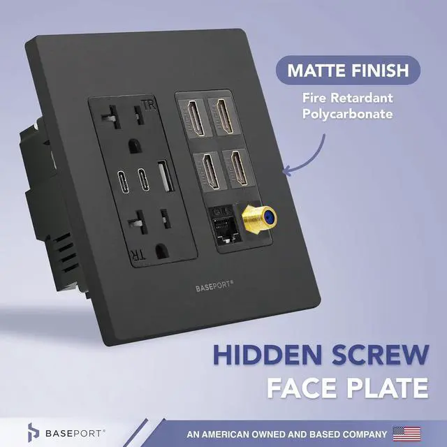 Superior Quality Connections - Includes (4) HDMI outlet that supports up to 4k resolution, (1) Cat6 ethernet, (1) coax keystone; the ultimate solution for your power and connection needs