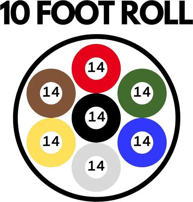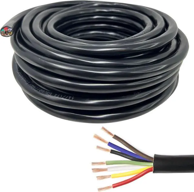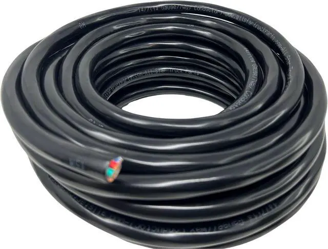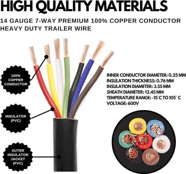 Top-quality Trailer Cable insulated and PVC jacketed ensures flexibility at -40° C. 7 Conductor Stranded Copper 14 gauge wire.