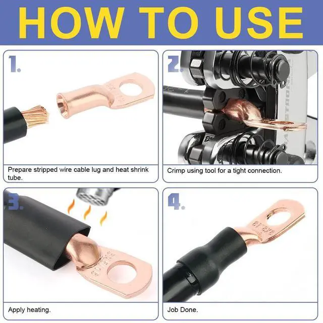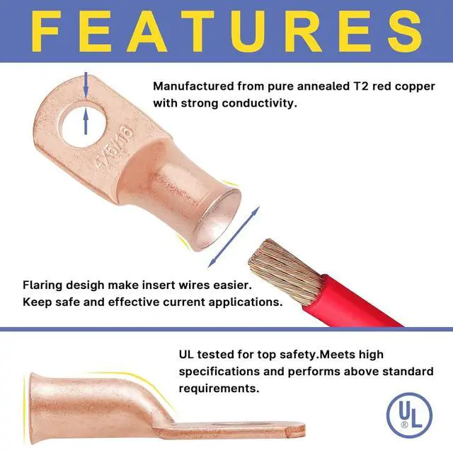 HEAVY-DUTY COPPER LUG KIT:The marine battery lugs is perfect solution for high voltage and ampere force applications.Made of 100% heavy duty pure copper,ensures that it is resistant to rust and corrosion while maintaining high conductivity,effectively preventing short circuits and poor contact